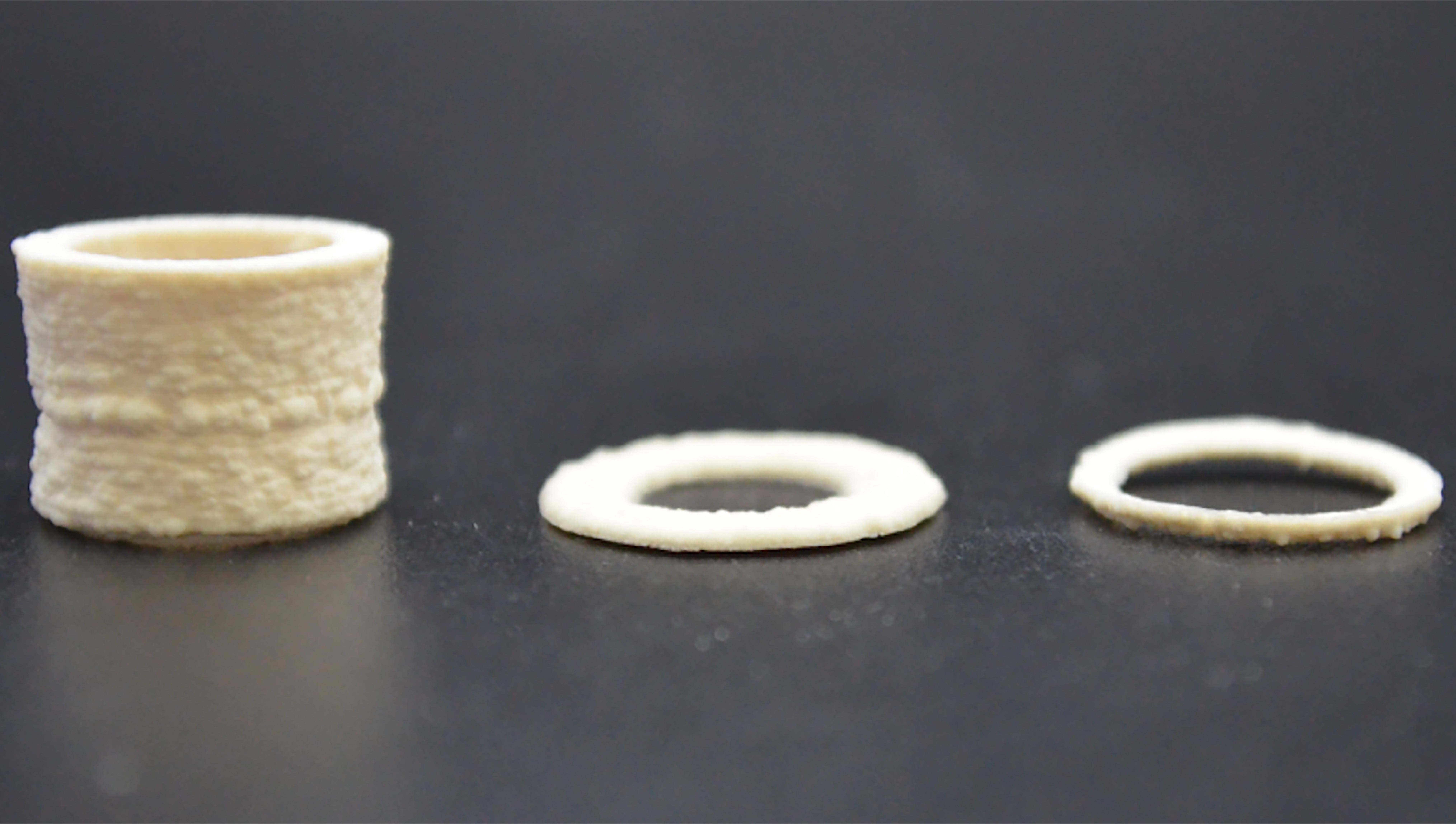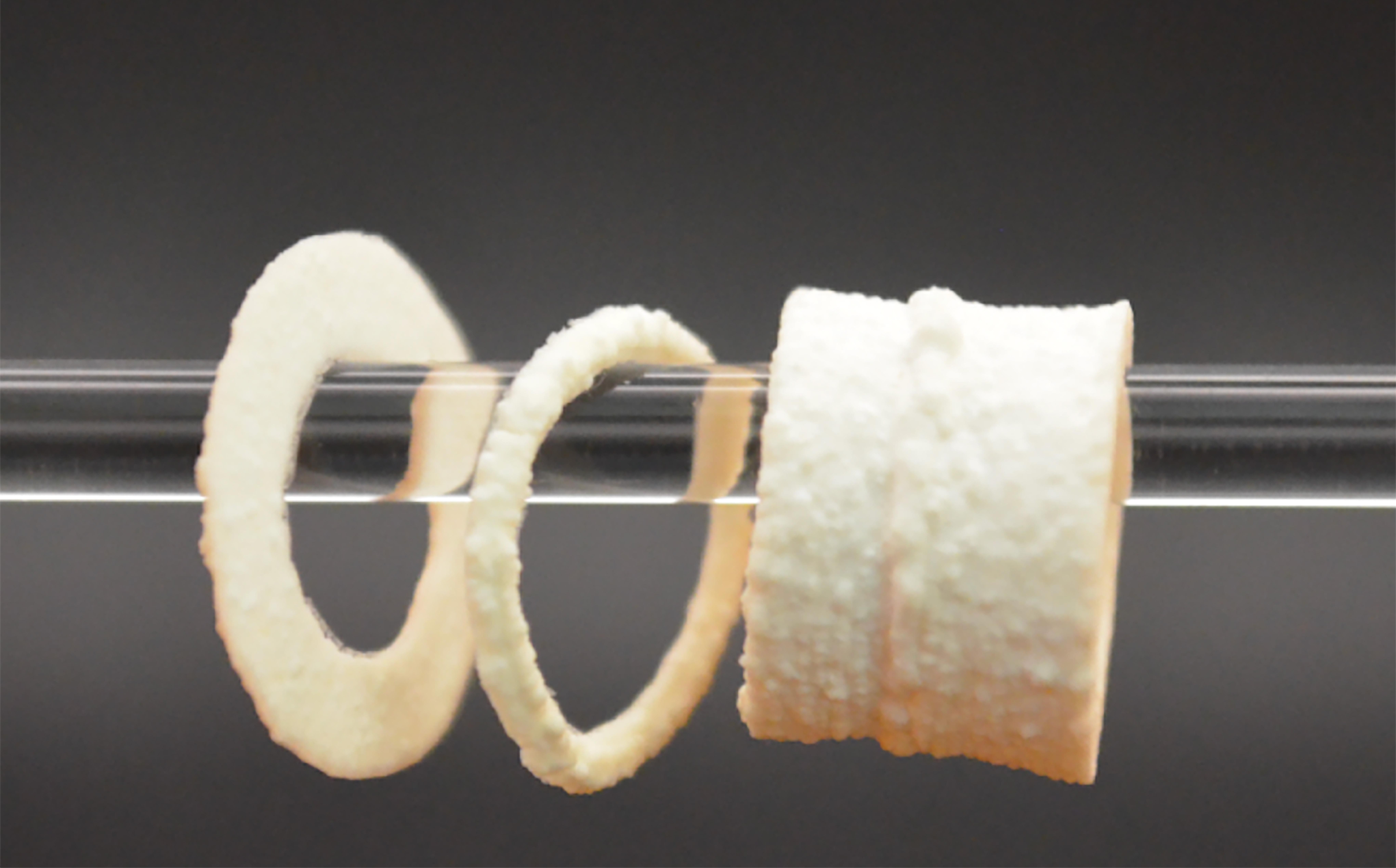 Cylindrical demonstrations of the 3D printed scaffolds. 2026 EPFL SMaL CC BY SA