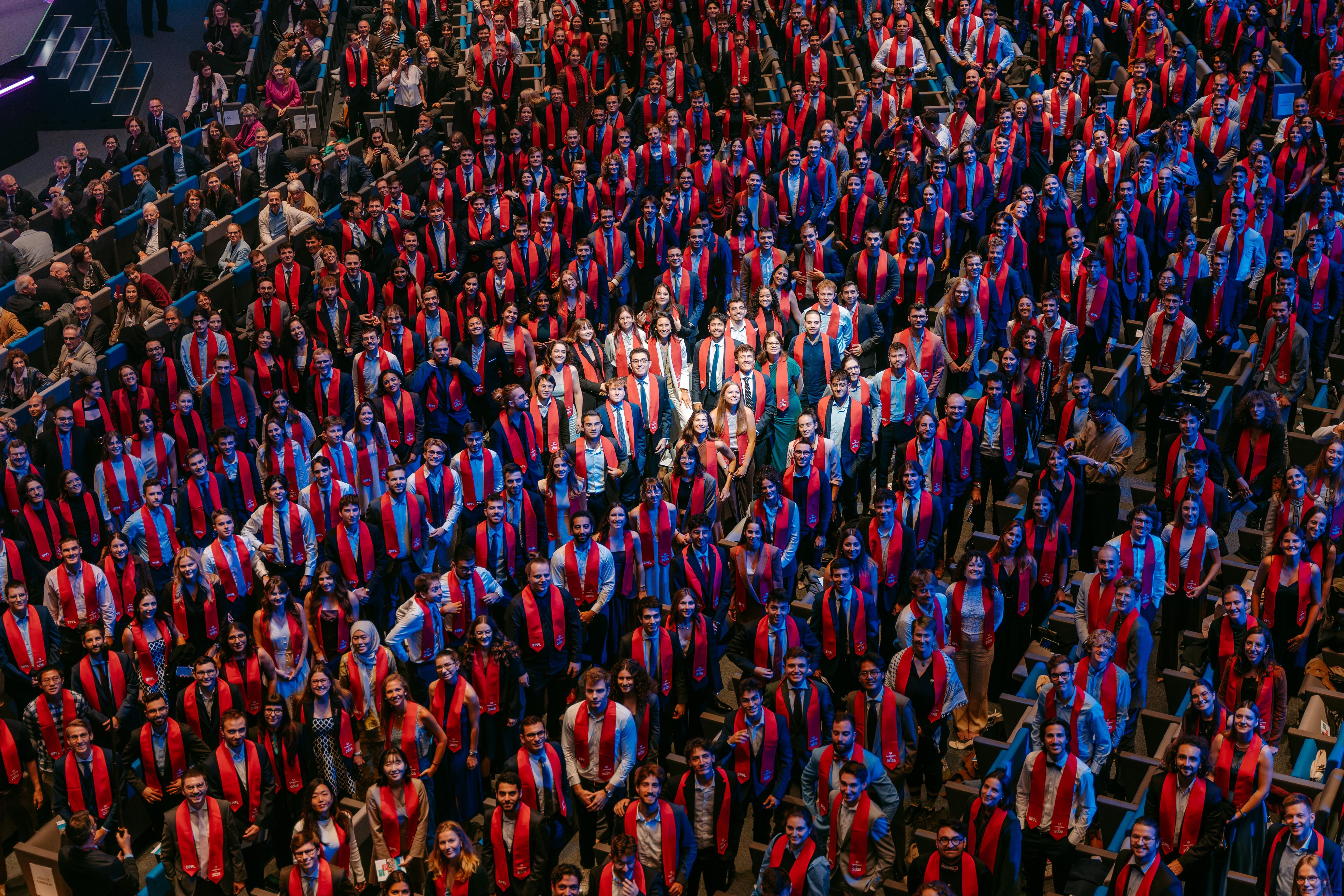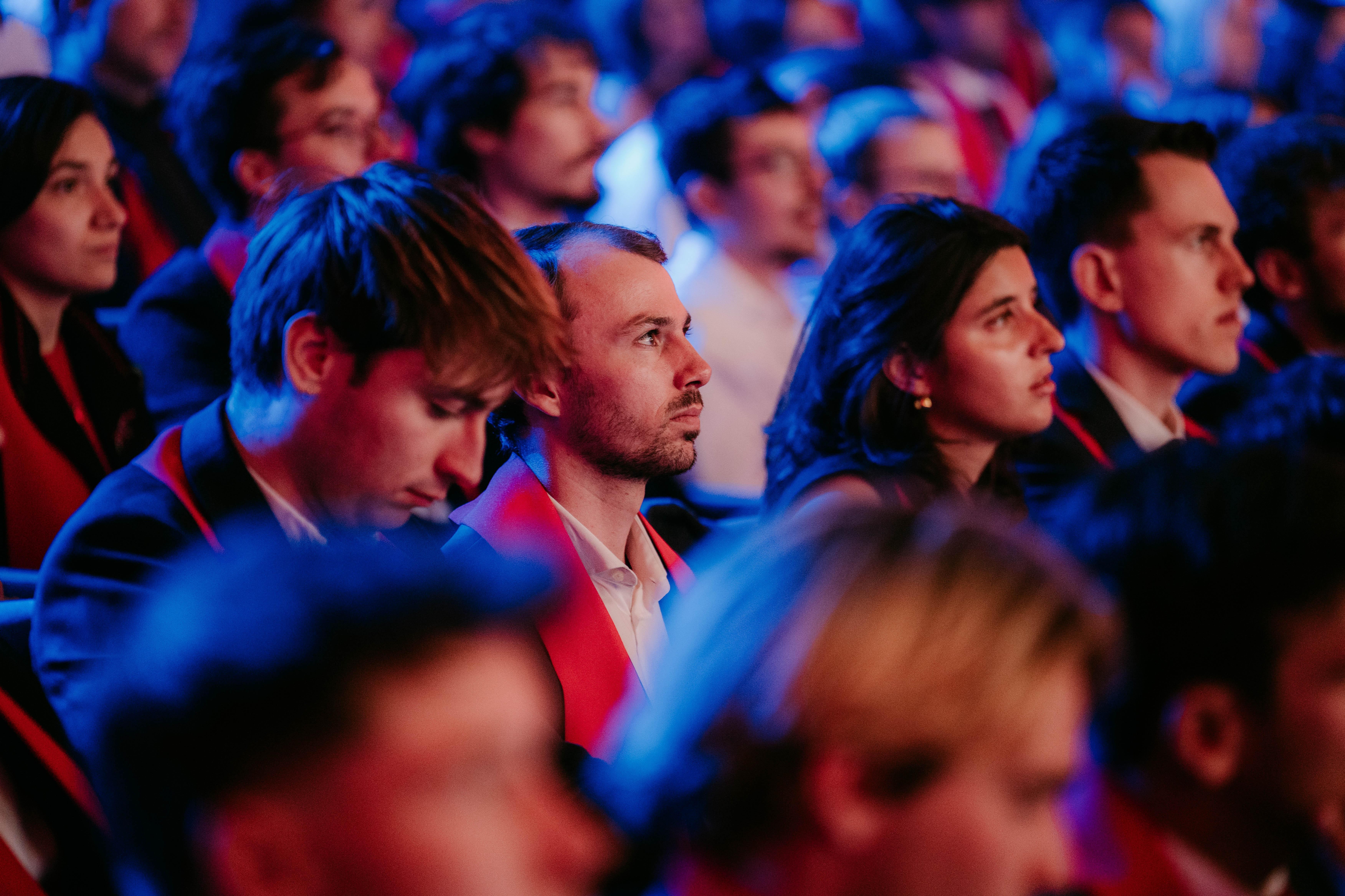 Swiss singer-songwriter Flèche Love brought her captivating voice and lyrical energy to the stage with a performance that blended electro and oriental influences. The ceremony concluded with the School President’s traditional photo with the audience.