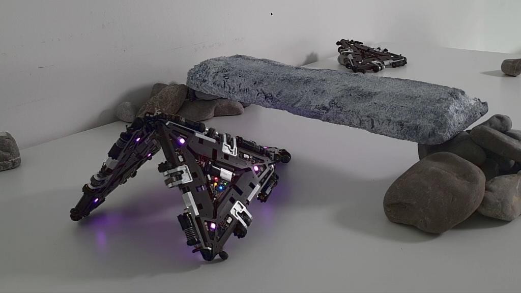 In a locomotion task experiment with the Mori3 robot, which is composed of four triangular modules, the team experimented with cutting battery power, wireless communication, and sensing to the central module. Normally, this ‘dead’ central module would block the articulation and movement of the other three, but thanks to hyper-redundancy, the neighboring modules fully compensated for its lack of resources. This allowed the Mori3 to successfully ‘walk’ toward a barrier and contort itself effectively to pass underneath it.